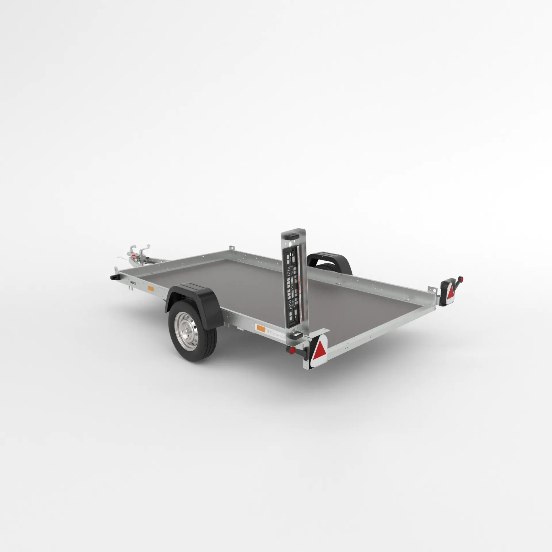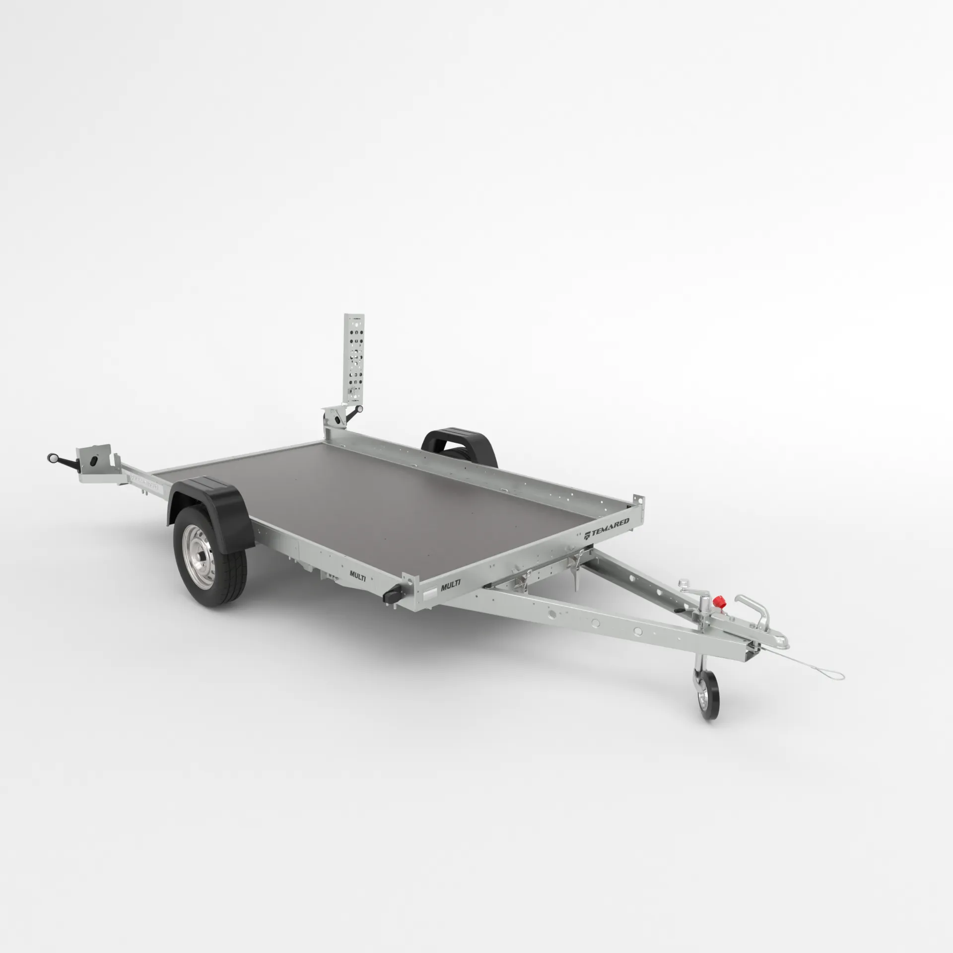 Platforma de transport universala cu timon basculabil, destinata transportului de motociclete, ATV-uri si alte vehicule de dimensiuni reduse. Constructia este realizata din profile de otel galvanizat imbinate prin suruburi, iar podeaua este din placaj antiderapant si impermeabil, conceputa pentru utilizare intensiva.