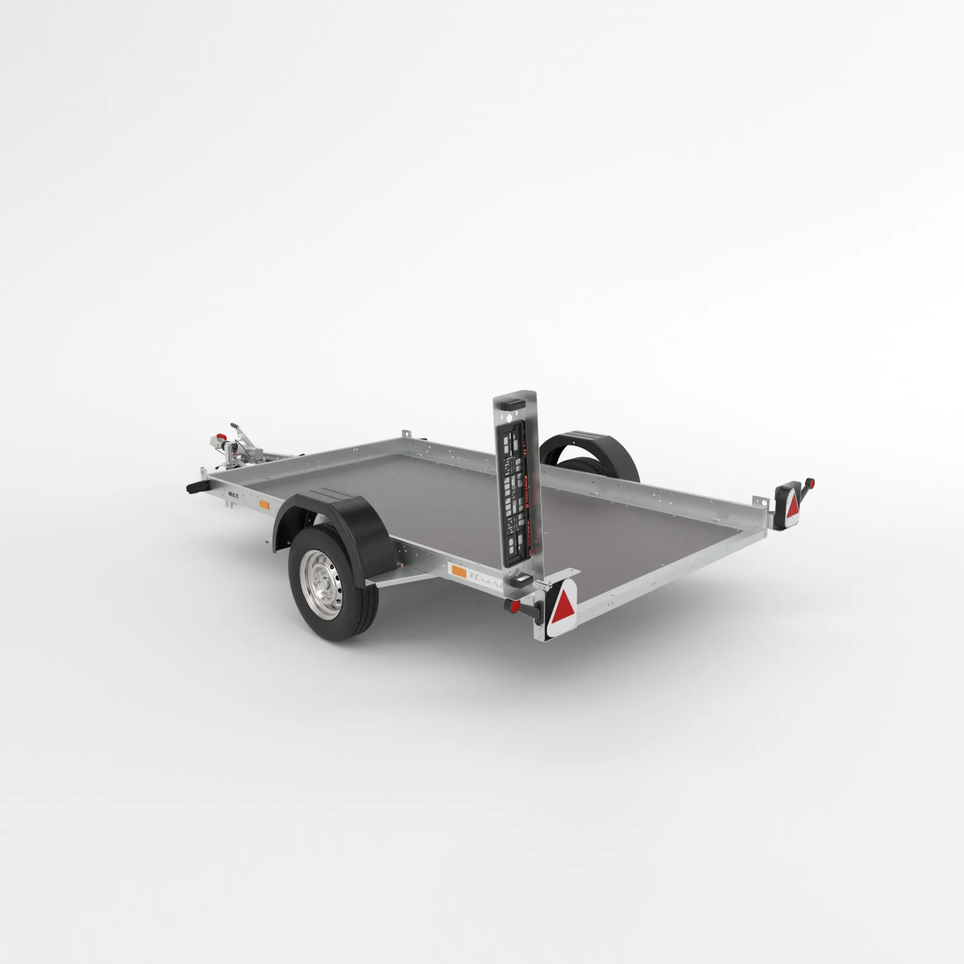 Platforma de transport universala cu timon basculabil, destinata transportului de motociclete, ATV-uri si alte vehicule de dimensiuni reduse. Constructia este realizata din profile de otel galvanizat imbinate prin suruburi, iar podeaua este din placaj antiderapant si impermeabil, conceputa pentru utilizare intensiva.