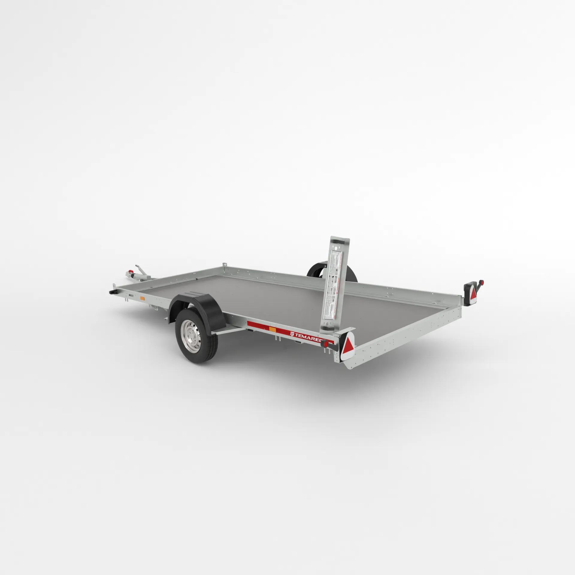 Platforma de transport universala cu timon basculabil, destinata transportului de motociclete, ATV-uri si alte vehicule de dimensiuni reduse. Constructia este realizata din profile de otel galvanizat imbinate prin suruburi, iar podeaua este din placaj antiderapant si impermeabil, conceputa pentru utilizare intensiva.