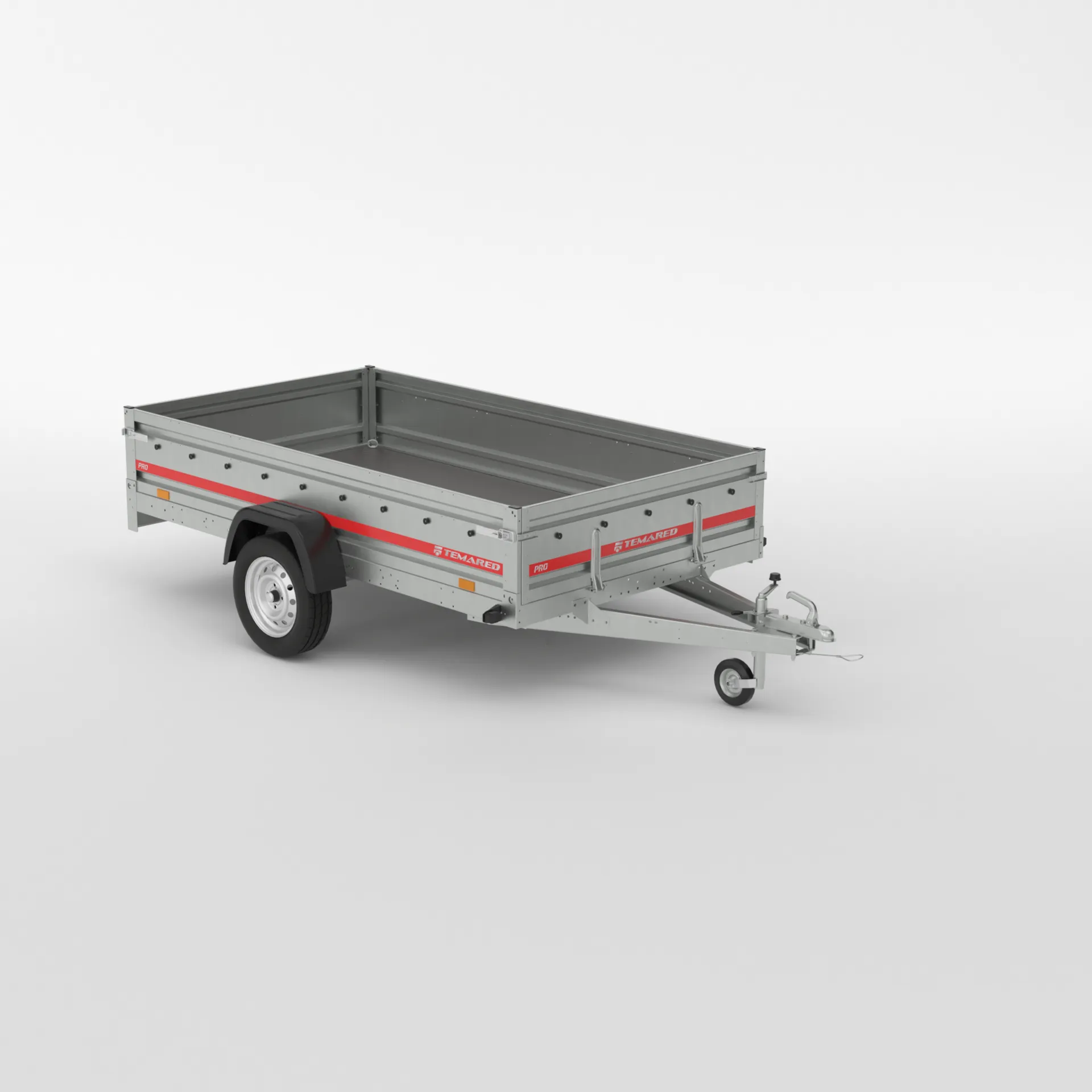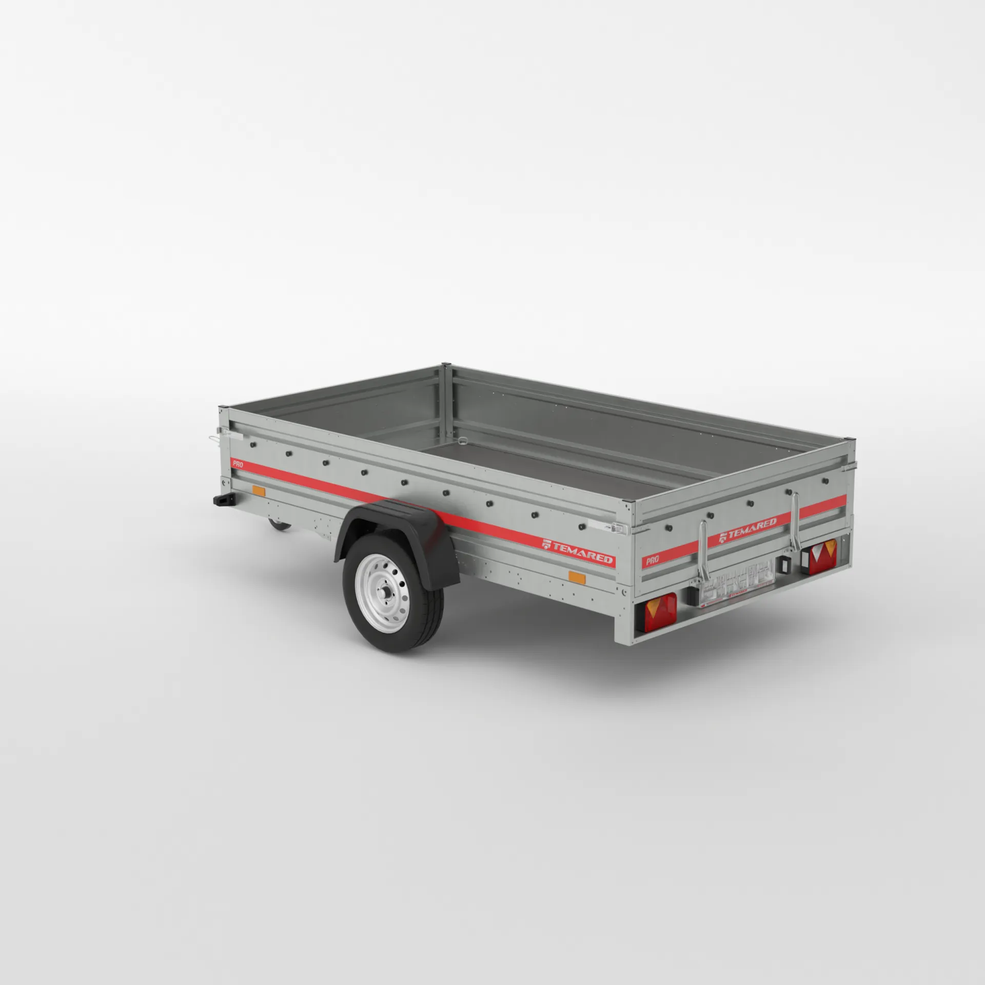 Remorcă robustă, cu cadru din oțel galvanizat, asamblată cu șuruburi, proiectată pentru transport sigur și durabil. Podeaua din placaj antiderapant și impermeabil asigură protecție bunurilor transportate. Dispune de obloane față-spate și puncte de prindere pentru chingi (4 buc.), potrivită pentru mutări și activități comerciale.