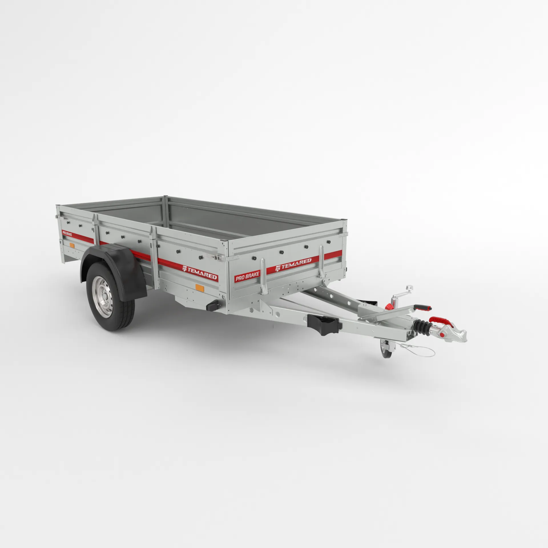 Remorcă robustă cu frână cu inerție pentru transportul încărcăturilor grele. Cadrul întărit și obloanele de 400 mm din oțel galvanizat asigură stabilitate și siguranță. Podeaua din placaj impermeabil antiderapant permite prinderea chingilor. Roțile sunt amplasate în exteriorul zonei de transport, cu centru de greutate coborât pentru manevrabilitate mai bună.