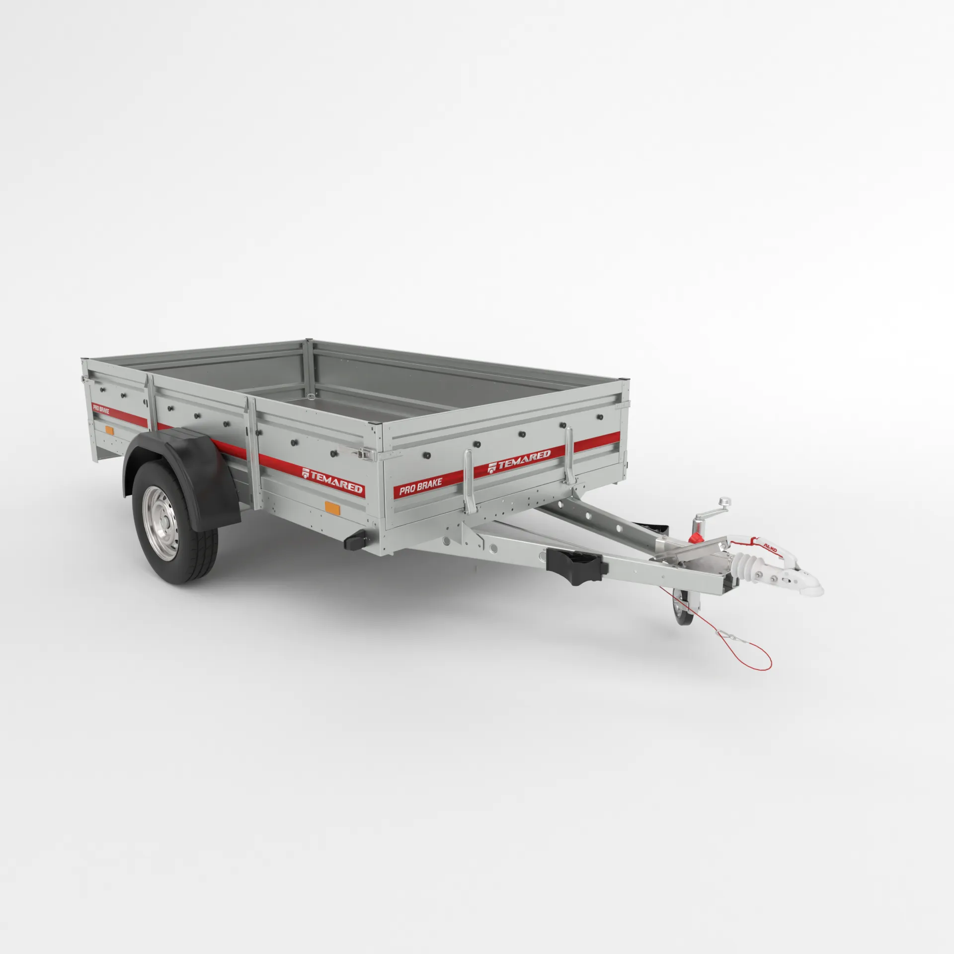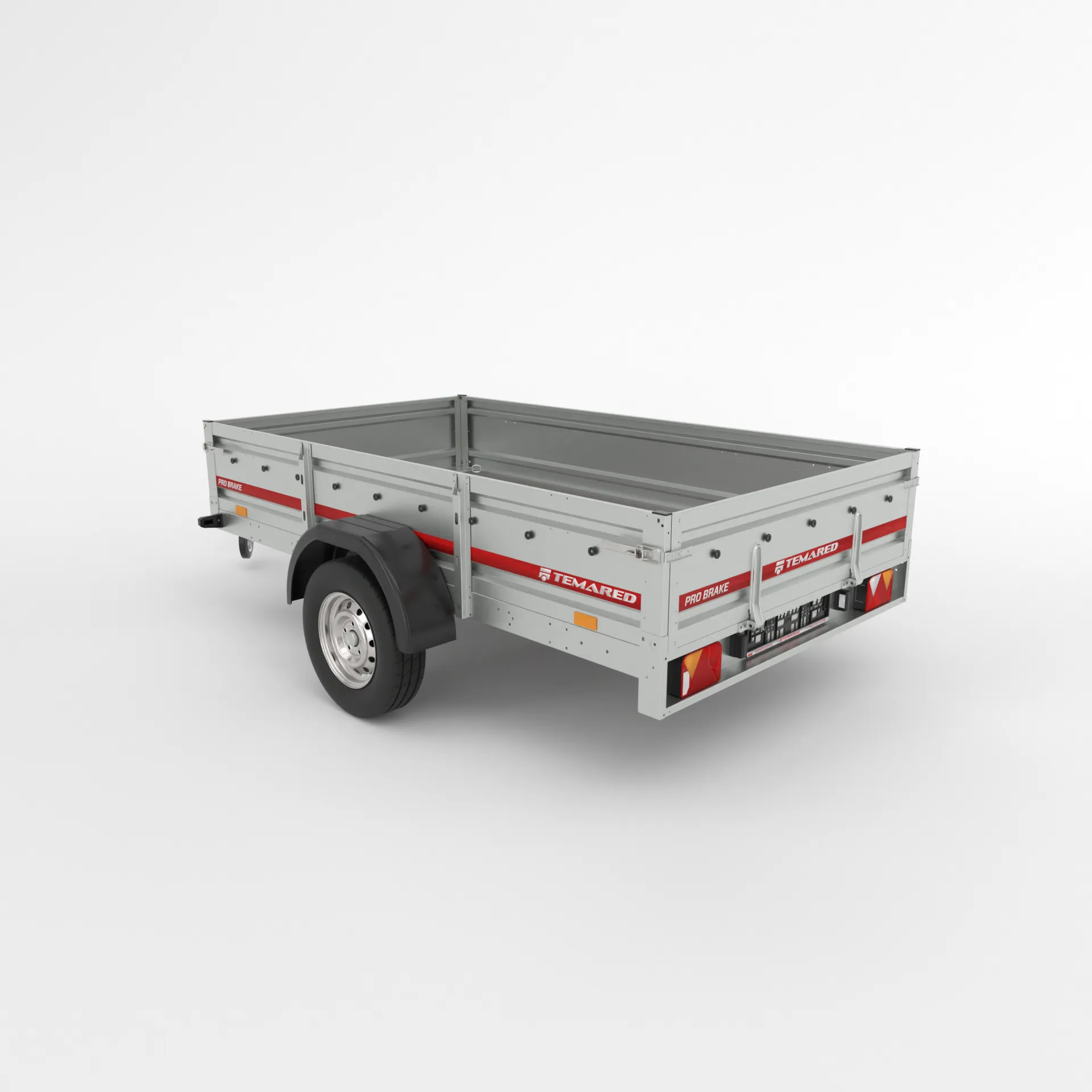 Construcția robustă, asamblată cu șuruburi, asigură mulți ani de utilizare fără probleme. Cadrul de susținere este realizat din profile îndoite, fabricate din tablă de oțel galvanizat. Podeaua este realizată din placaj antiderapant, rezistent la apă, echipat cu puncte de prindere pentru centuri. Roțile sunt poziționate lateral pentru un centru de greutate mai coborât, oferind stabilitate superioară în timpul transportului.