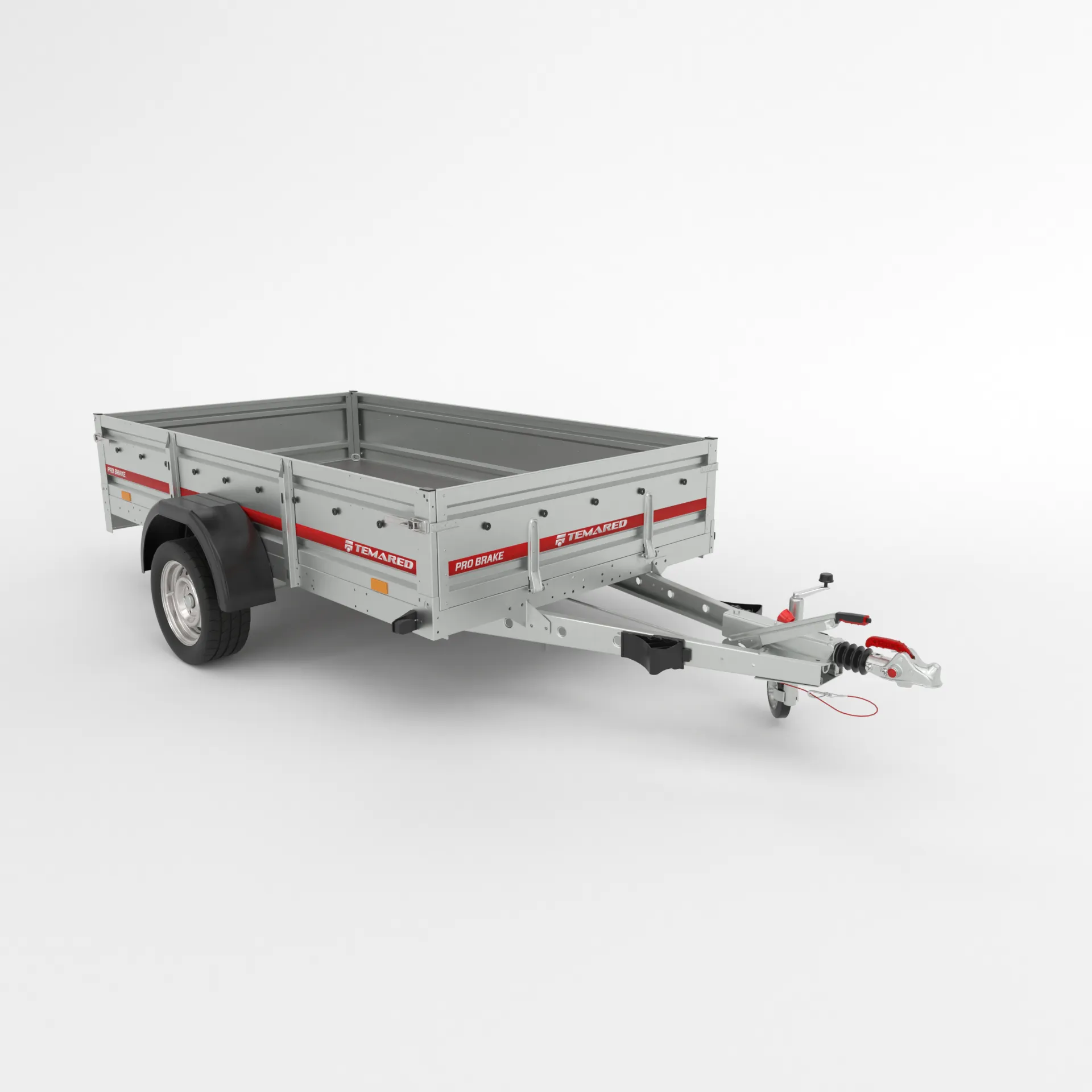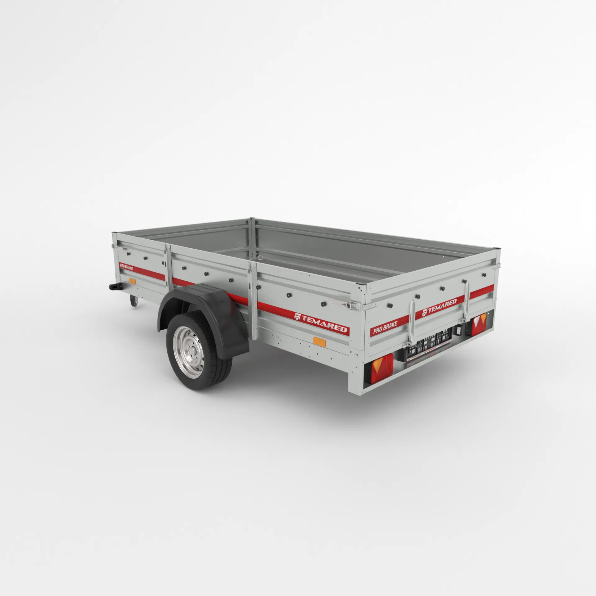 Remorcă profesională cu frână cu inerție, destinată transportului de încărcături voluminoase și grele. Construcția robustă, asamblată cu șuruburi, asigură durabilitate pe termen lung. Cadrul este realizat din profile îndoite din oțel galvanizat, iar podeaua este din placaj impermeabil, antiderapant, ideal pentru utilizare intensivă. Obloanele din oțel galvanizat de 400 mm se pot deschide atât frontal, cât și posterior, pentru o încărcare facilă.